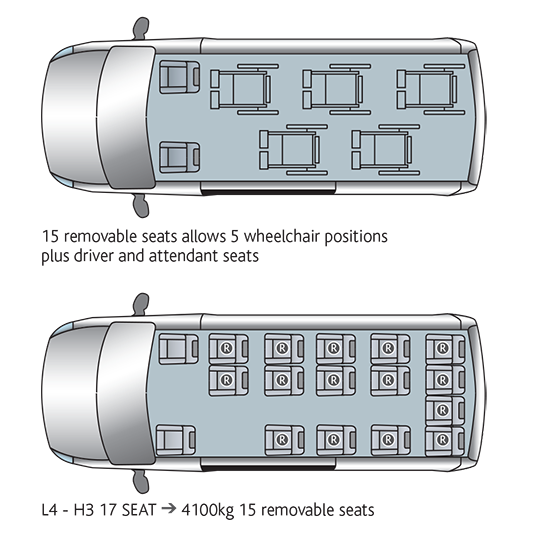 - 17 seat extra-long wheelbase and high roof L4 – H3 model